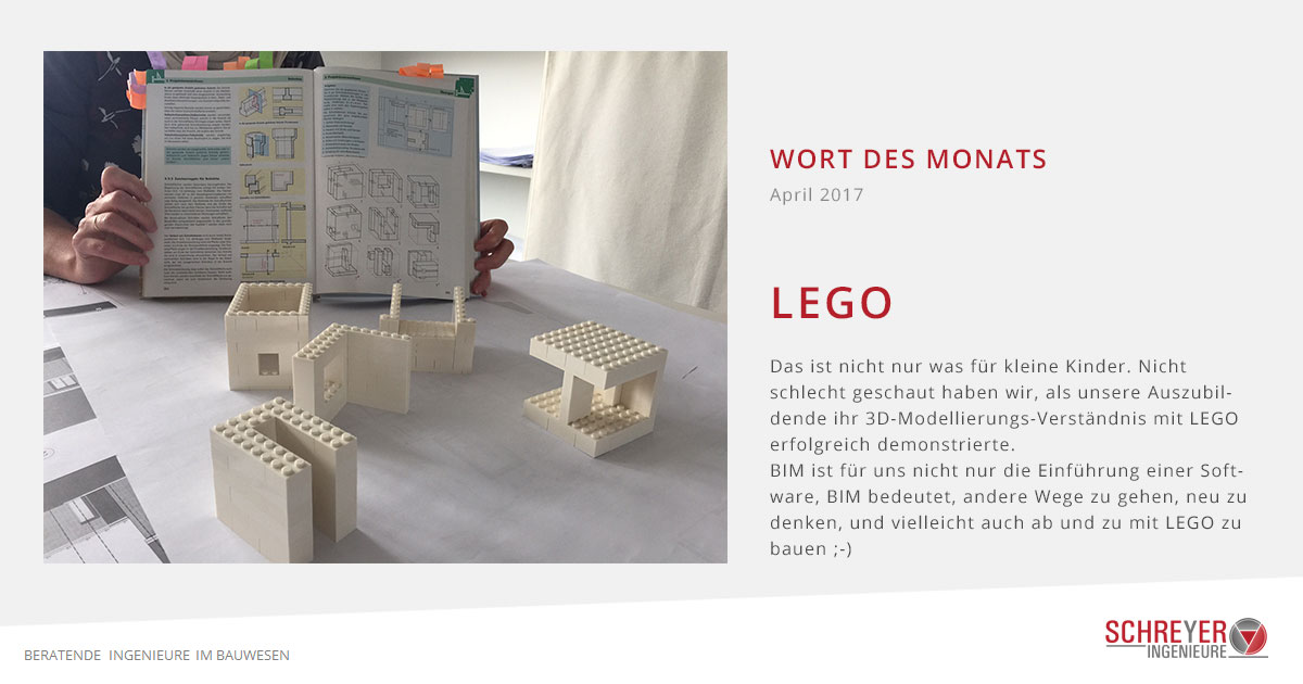 BIM ist für uns nicht nur die Einführung einer Software, BIM bedeutet, andere Wege zu gehen, neu zu denken und vielleicht auch ab und zu mit LEGO zu bauen ;-)