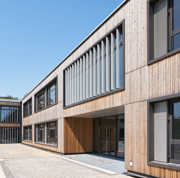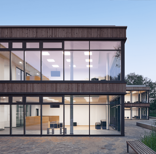 Der Neubau wird als 2-geschossiges Gebäude errichtet. Das Gebäude wird nicht unterkellert. Es wird außen und innen in seinen tragenden Bauteilen aus Stahlbeton errichtet. Die Außenwände erhalten eine Holzfassade. Als oberer Abschluss ist eine kreuzweise gespannte Stahlbetondecke mit einer Dicke von d=22cm mit Dachdämmung, Dachabdichtung und Gründach vorgesehen.