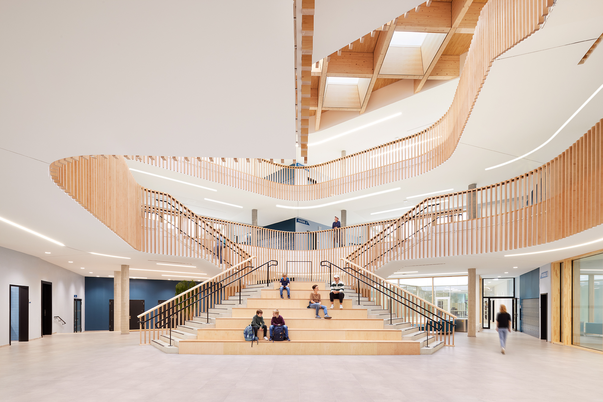 Die Schule hat eine Brutto-Grundfläche von ca. 13.000 qm und eine Nutzfläche von ca. 12.000 qm. Mit erneuerbare Energien wie Solarenergie und Geothermie wird Energieverbrauch reduziert und die Umwelt geschont. Das innovative Lüftungs- und Heizungssystem sorgt für ein angenehmes Raumklima. Hochwertigen Materialien und Farben schaffen eine freundliche und einladende Lernumgebung.