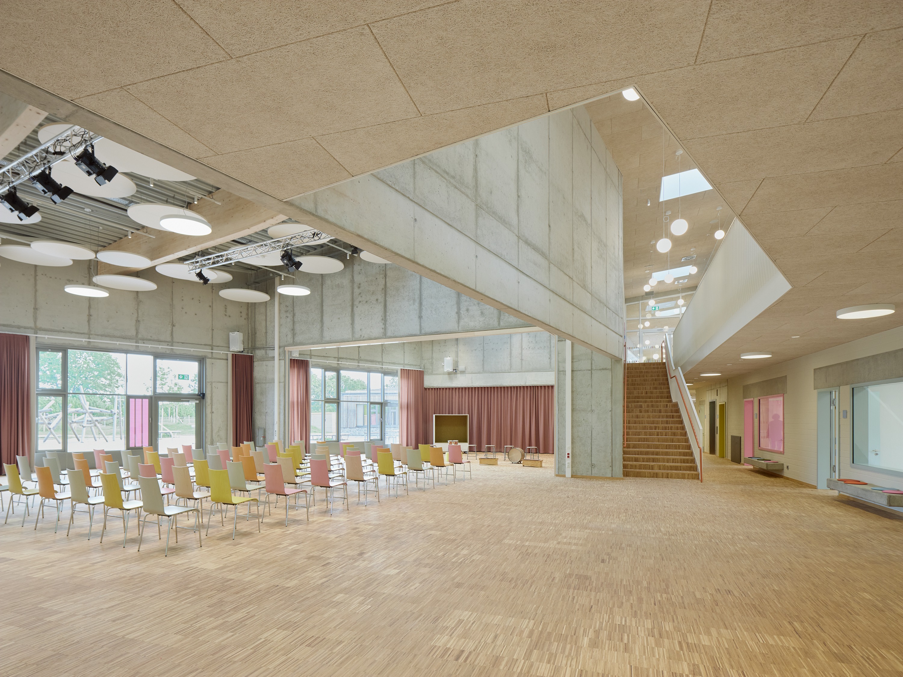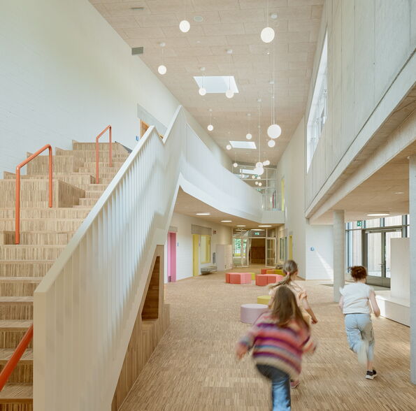 Die Grundschule Bünningstedt hat einen zweizügigen Neubau erhalten, der jahrgangsübergreifendes Lernen durch Lernhäuser, offene Lernflächen und Raum für soziale Interaktion ermöglicht. Statt klassischer Flure unterstützen flexible Lernumgebungen, sogenannte "Marktplätze" und "Lernhallen", das innovative hybride Lernkonzept und fördern kommunikatives und bewegungsorientiertes Lernen. Der Neubau gliedert sich in drei Bereiche, die zentral verbunden sind. Er besteht aus einem 2-geschossigen Hauptteil und zwei kompakten Lernhäusern für jüngere Jahrgänge. Ein offenes Foyer im Hauptteil bildet den Eingangsbereich. Das Gebäude wurde als klimafreundlicher und energieeffizienter Neubau konzipiert und entspricht dem Standard Effizienzgebäude 40. Auf dem Gelände wurde außerdem eine Sporthalle mit Sportlerheim und üblichen Nebenflächen errichtet.