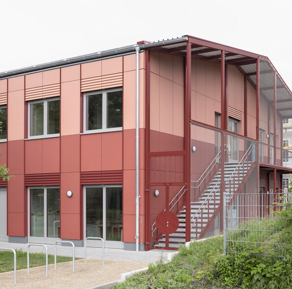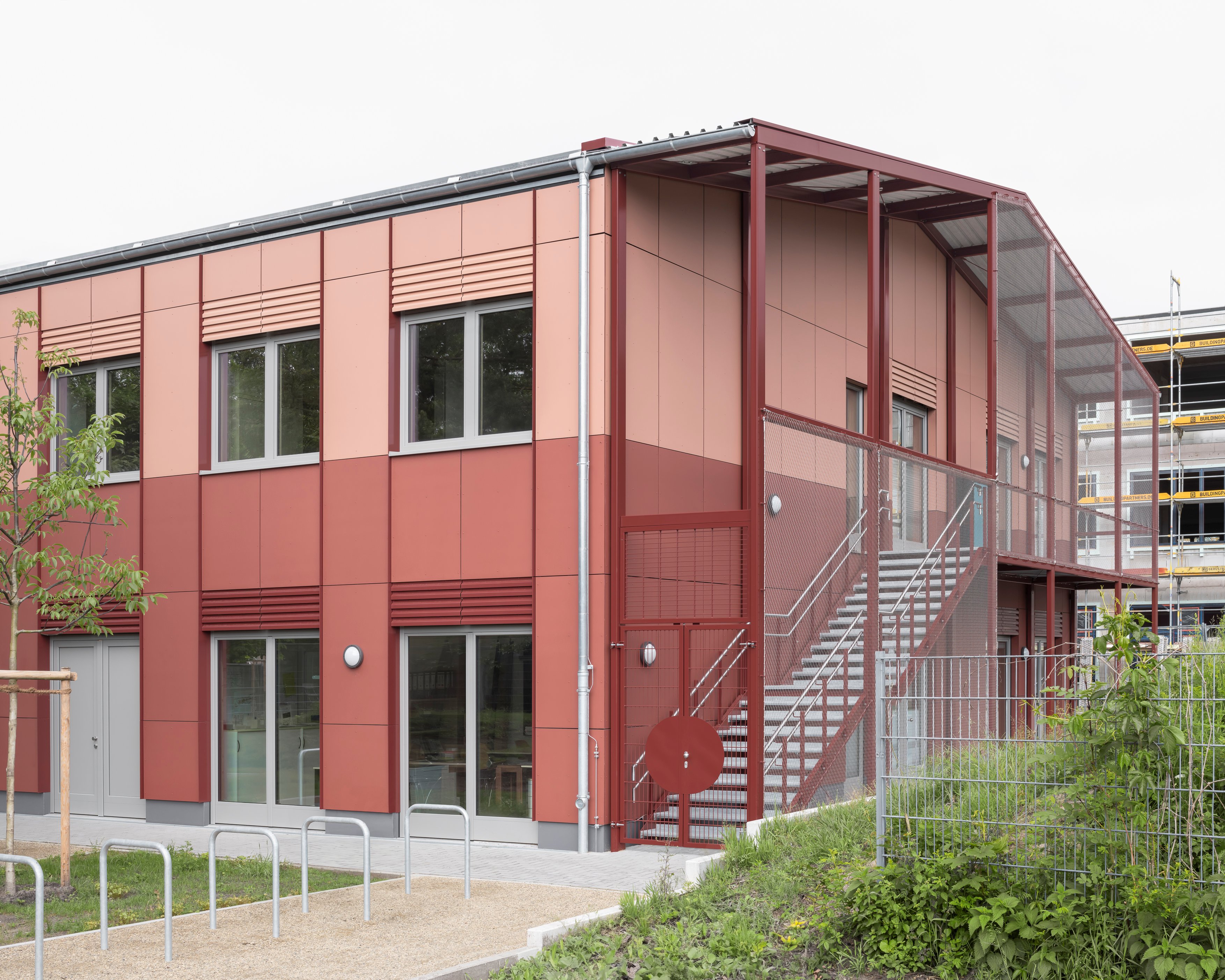 Das Gebäude wurde nach dem Typus 1.B der Hamburger Klassenhäuser entworfen und errichtet. Durch vereinheitlichte Planung und einen hohen Grad an Vorfertigung werden Planungs- und Bauprozesse verkürzt und daraus resultierend die mittelbaren und unmittelbaren Kosten signifikant reduziert. Durch Maßnahmen wie unter anderem das extensive Gründach mit 130m² großer Photovoltaikanlage konnte die Zertifizierung DGNB-Gold der Deutschen Gesellschaft für nachhaltiges Bauen erreicht werden.